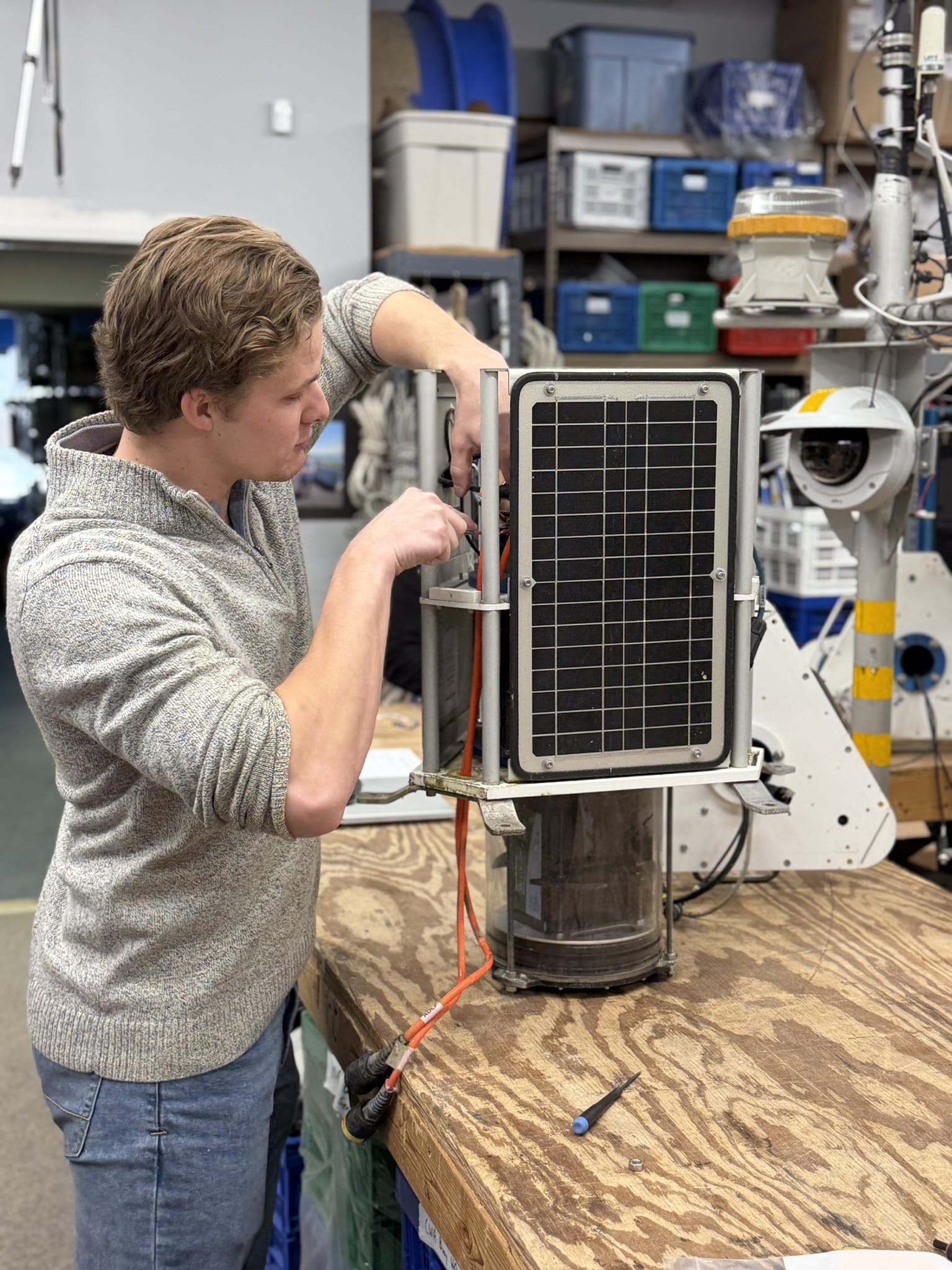 Hard water deposits, algae, biofouling, bird droppings, and tangled fishing line are among the usual culprits. Each buoy receives a full power wash and is then hand-scrubbed to maintain the condition of all mechanical components. Solar panels, often clouded by mineral buildup or debris, are treated with a specialized cleaning solution to maximize power generation throughout the deployment season—supporting the high-frequency, data-dense sampling our users rely on.